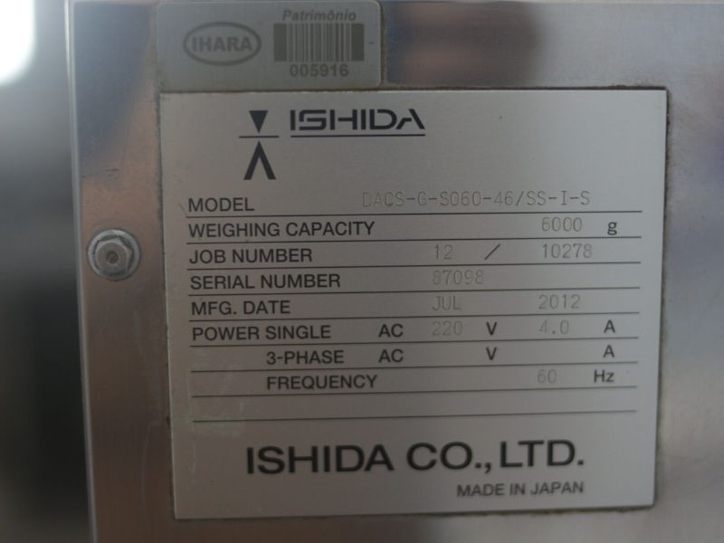 Balança checadora de peso Ishida para caixa. Sistema de pesagem: célula de carga...