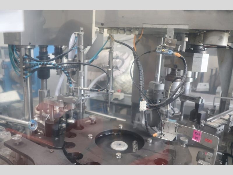 Enchedora tampadora aplicável em envase de tinturas e oxidantes em embalagens plásticas. Sistema de enchimento por pistão;