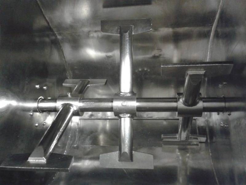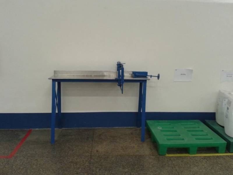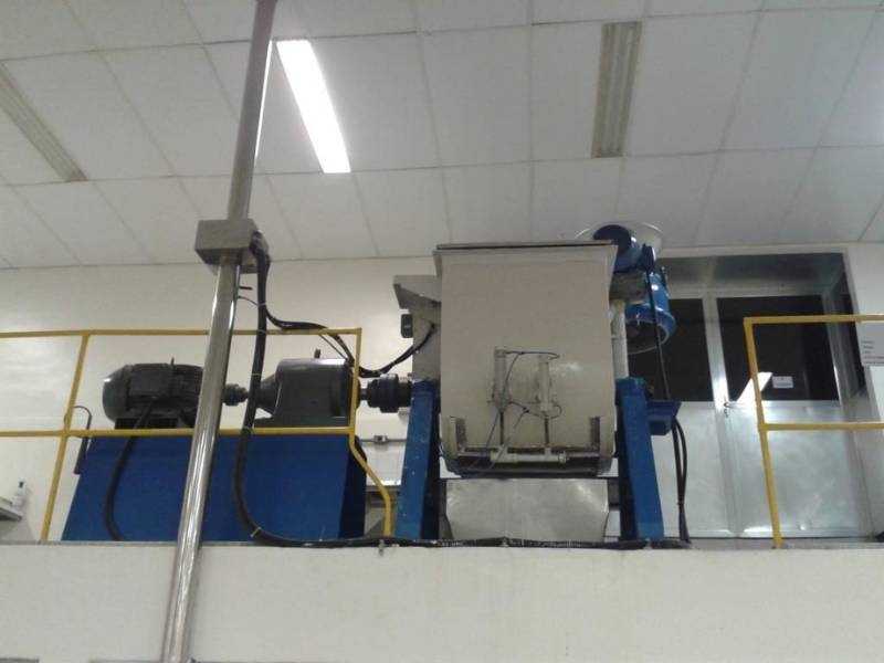 A linha vai do misturador até a estampadora; o misturador é de pás e tem a capacidade de 125kg; a prensa estampadora tem a capacidade de 50 peças/min.