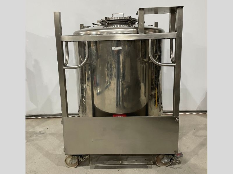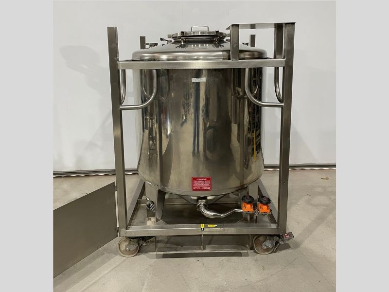 Tanque para armazenamento de álcool com 995 litros úteis, em aço inox 304, com tratamento interno sanitário.